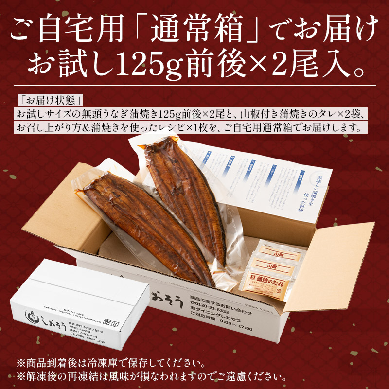 うなぎ 国産 蒲焼き お試しサイズ 125g×2尾
